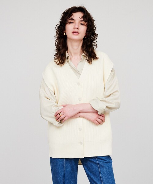 こなれた表情感が魅力のツイードジレベスト 【デザイン】 ・ゆったりシルエットと深めのVネックが洗練されたリラックス感を演出。 ・前開きのボタンデザインで着脱しやすく、レイヤードスタイルも自在。 ・サイドの深めスリットが動きを加え、軽やかさと抜け感をプラス。 【素材】 ・ニット素材でシワになりにくく、サラッとした軽量感。 ※ウォッシャブル加工(手洗い可能) 【着こなしポイント】 ・一枚でサラリと着ても、絶妙な抜け感が演出できる主役級ベスト。 ・シアーのインナーを覗かせたレイヤードスタイルでモダンな雰囲気に。 ・パンツ派もスカート派も一気に今っぽく決まるアイテムとして使い勝手◎ ーーーーーーーーーーーーーーーーーーーーーーーーーーーーーー 気になるアイテムはお気に入り登録がおすすめ! お気に入り登録で、再入荷通知やお値下げ情報をお知らせ。 お得な情報をいち早くお届けいたします! アイテムページにある、ハートマークをクリックして追加できます。 ーーーーーーーーーーーーーーーーーーーーーーーーーーーーーー ※照明の関係により、実際よりも色味が違って見える場合があります。また、パソコン・スマートフォンなどの環境により、若干製品と画像のカラーが異なる場合もございます。 店舗へのお問い合わせ商品番号:R91-32405 ●製品寸法: 02(M):着丈69cm B106cm 肩幅49cm 備考: