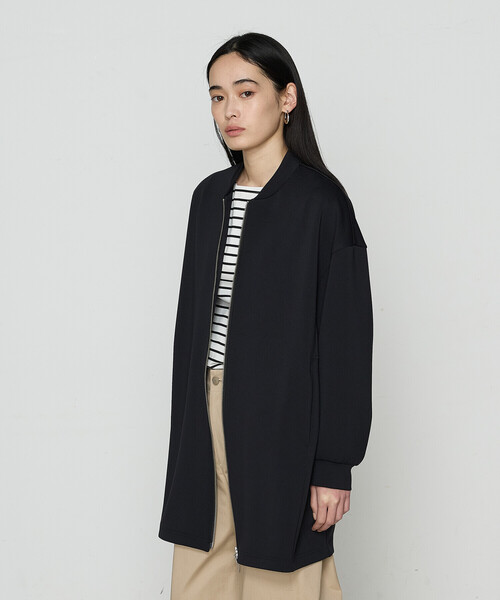 《デザイン》人気の定番素材で、ロングスタジャンタイプの羽織です。ゆったりとしたサイズ感ながら、長すぎない着丈はボトムを選びません。あえてメタルファスナーのムシを見せ、きらりとポイントにしています。ダブルジップ仕様のため、好きな位置で開き具合を調整できます。《素材》適度な肉感としなやかで、はりのある質感が特長のダンボール素材です。キックバック性が高く、テンションがありながら軽量なのもポイントです。しわになりにくくお手入れしやすい素材です。お手入れ:手洗いOK