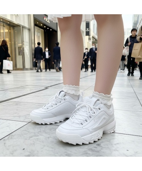 もはやFILAスニーカーの代名詞ともいえる定番モデル。 海外セレブリティーからストリートのファッションアイコンまで、数多くの人の足元を彩っている”ディスラプター2”。 90年代後半にターフ トレーニングシューズとして人気を誇った代表的モデル”ディスラプター”をベースに現代流の再解釈を加えた。視点が高くなるプラットフォームアウトソールのスタイリッシュな一足。