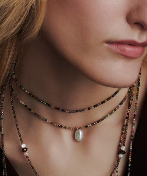 【フォレスト チョーカー】 スモーキーで柔らかな色調のトルマリンをあしらった、上品な輝きのチョーカー。 “forest(森林)”の名が表すとおり、シックで大人な雰囲気の中にも、幻想的なムードが漂います。 “希望”や“無邪気”などを石言葉に持つトルマリン。 前を向きたい時や自分らしくいたい時にも勇気をもらえるはず。 照り輝く淡水パールがリュクスなアクセントに。 ルーズなシャツやカットソーなど、気負わないヘルシーな服とよく合います。 #BOB634 日本製 素材:淡水パール,トルマリン マンテル・プレート:silver925 全長:38cm モチーフ:約縦13mmx約横9mm トルマリン:約2.2mm ※天然素材の為、パールのサイズや形に個体差がございます。 ※トルマリンは、一粒ごとに異なる色合いを持つため、並び順や色の組み合わせが一点ごとに異なります。 どれも自然が作り出した唯一無二のデザインとして、特別な一点物の魅力をお楽しみくださいませ。 【 les bonbon / ル ボンボン】 ミニマリズムとさりげなさ。 シンプルで美しく飽きのこないスキンジュエリー。 日常のファッションに快適で肌馴染み良くつけられて、洗練感を放つジュエリーを追求しています。 肌馴染み良く軽やかな付け心地にこだわったジュエリー。 美しいレイヤードが成立するような計算されたデザインは、ネックレス、ブレスレット、ピアスやリングなどトータルコーディネートできるようなバリエーションをご用意しております。 素材は K10 をメインに金属アレルギーの方にもお使いいただけるよう配慮した素材を使用しております。 ≪お気に入り登録≫でお得な情報盛りだくさん ・“商品のお気に入り登録”で再入荷通知やラストの通知、セール通知も受け取ることができます。 ・“ブランドのお気に入り登録”で新商品や再入荷など、お得な情報を受け取ることができます。 ※ご注文いただいた予約商品のお届け時期の確認は、注文履歴ページより行えます。