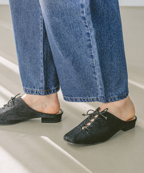 ーーー深めに甲を覆うシルエットが新鮮なミュール。素足にはもちろんの事ソックス合わせもおすすめです。シューレースはゴム使用なので甲の高さを気にせず履いて頂けます。リボンは結んでいるだけなので取り外し可能。ーーー※屋外での撮影画像は光の加減で実際の商品より明るく見えたり、風合いが異なって見える場合がございます。 商品の色味はスタジオ撮影の画像を参考にして下さい。-------------------------------------≪お買い物をよりお楽しみいただくために≫◆商品のお気に入り登録(ハートマークをクリック)完売カラーの再入荷通知や、完売間近の通知、セールの通知も受けることができます。◆ブランドのお気に入り登録新商品や再入荷など、いち早くブランドのお得な情報を受け取ることができます。-------------------------------------
