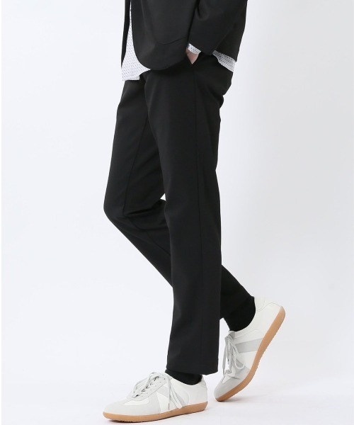 ■素材特徴 ポリエステル100%のニット素材を使用しています。ツイル調の編地に天然素材をボンディングすることで布帛のように見えます。程良いハリ感、優れたストレッチ性、軽い着心地が特徴です。 ■機能 【ストレッチ】伸縮性に優れ動きやすく、長時間の着用もストレスフリー。 【マシンウォッシャブル】洗濯機で洗えます。(要ネット・弱水流) ■デザイン ラクもキレイも叶えられる快適素材「クロスストレッチ」シリーズ。カジュアルセットアップにぴったりなノータックのテーパードパンツです。ウエストストレッチで着用ストレスを軽減。前ボタン、ファスナー有り、ベルト通し付き、前後ポケット付きです。スラックスのようなドレス感があるので、プライベートやオフィスカジュアルにオンオフ兼用で着回し可能です。 ■シルエット 腰回りや太ももはゆとりがあり、裾に向かって細くなるテーパードシルエットです。裾部分は加工済みです。(股下76cm・ミシンたたき) ■同素材のアイテムは下記品番をご参照ください。 ・クロスストレッチ 2ボタンジャケット:110203933410533 フィット感:やや細身 シーズン:春夏 展開カラー:黒(ブラック)・紺(ネイビー) *こちらの商品はセット販売ではなく、単品のみの販売となります。 *アテンションタグ・洗濯ネームを御確認の上、着用又は取り扱い下さい。 *光の当たる場所や高温多湿になる場所での保管は避けて下さい。 *使用の有無に関わらず、経年劣化は進行いたしますのでご了承下さい。 *閲覧デバイス・環境により質感・色味に誤差が生じる場合がございます。 * ZOZOTOWN お買い物ガイド 商品のお気に入り登録 ♡をクリックしましょう!完売カラーの再入荷通知や、ラスト1点の通知、セールの通知をお知らせします。 ブランドのお気に入り登録 新商品や再入荷など、いち早くお得な情報を受け取ることができます。 最短で翌日お届け 商品をカートに入れた後、注文内容の確認ページで「即日配送」を選択していただければ、最短でご注文した翌日にお届け致します。 (ZOZOTOWNお買いものガイドをご参照ください) *裾上げ等のお直しが必要な場合は、ZOZOTOWN納品書をご持参していただき最寄のタカキューグループ店舗までお持ちください。 お直し代金 お直しにかかる期間は店舗によって異なる場合がございますので、詳しくは店舗スタッフまでお問い合わせください。