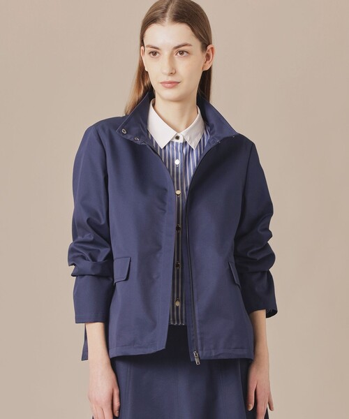 【はっ水】【着用推奨シーズン:春・秋】 <素材説明> ポリエステルと綿で構成したMACKINTOSH LONDONオリジナルの軽量なギャバジンです。ポリエステルはペットボトルのリサイクルポリエステルを使用し、環境に優しいCゼロ撥水を施しています。適度なハリ感のある上品な素材です。 <機能性> はっ水性のある生地を使用しています。(着用・クリーニングにより徐々に効果は低下します。) <デザインポイント> 程よく身体から離れたシルエットでリラックス感のあるスタンドカラーのブルゾンです。スカートやワイドパンツとのスタイリングに活躍します。背裏にはストライプの別布を使用しています。同素材のコート(品番:G5A01520)、スカート(品番:G5S01520)、パンツ(品番:G5R14520)もご用意しております。 ※この商品はサンプルで撮影を行っています。実際の商品とイメージ、仕様等が異なる場合がございますので予めご了承ください。