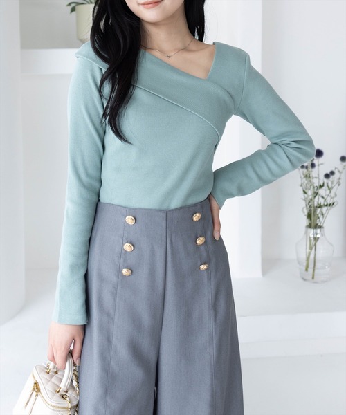 きれいめ上品な!袖スリットクロスリブカットソー大好評商品のため新色が仲間入り♪今季に着こなせるモカ、ミントの2色を追加!------------半袖バージョンも販売中!101A1-131480------------【デザイン】デコルテラインがすっきりとして、スタイルアップが叶うカットソーです。程よくフィットするシルエットで、着心地も抜群です♪さりげない袖のスリットも女性らしいポイントです!【素材感】肌触りの良い綿素材伸縮性:あり/ 透け感: オフホワイト、サックスのみ若干あり/ 裏地:なし 手洗いによる洗濯可 / ドライ・ウェットクリーニング可【コーディネート】マーメイドスカートやフレアスカートなどきれいめなボトムス合わせがオススメです◎華奢なアクセサリーとも相性抜群です!【CLEAR BASIC】2025年春から、OL層のお客様向けの着回ししやすい新ブランドです♪【※お取り扱い上のご注意】1:モニター環境等により実際の商品と多少色味が異なって表示される場合がございます。予めご了承下さい。2:屋外で撮影された商品は、天候により多少実際のカラーと異なる場合があります。商品のカラーはトルソー(マネキン)の商品画像をご参照ください。3:濃い色の商品は、お洗濯や摩擦等による移染にご注意ください。4:末永くご愛用頂く為に、アテンションタグ・洗濯ネームを必ずご確認の上、着用又はお取り扱い下さい。5:生産時期により、色、サイズ、デザイン、素材の質感が多少が異なる場合がございます。あらかじめ御了承下さいませ。