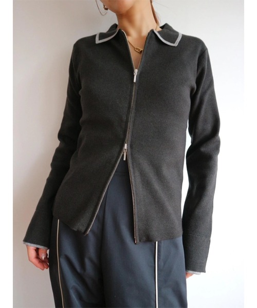 【Item Comment】今年らしい鮮度抜群のZIPUPニットシャツ。 ネック端と袖口の配色がデザインポイント。 さらに袖口はレイヤード風の配色でこなれ感がUP。 やわもちの糸にナイロン糸をプレーティングする編み方法を取っていることで、キックバックもよく、 ほどよい厚みのある編地に仕上げています。 下着の線が響きにくいので、インナーリブのように1枚で着用できるニットです。 杢カラーの糸を使用したニュアンス感も魅力。 また、こちらの製品には静電気が発生しにくい加工をしており、着脱時の不快な静電気を軽減します。 (感じ方には個人差があります) 【Coordinate】 Wジップを活かして、裾側を広めにあけてプルオーバーとして着用するとよりウエストが細見えし、 スタイルアップが叶います。 もちろん開けて羽織としても使用できます◎ 【Color Variation】 BLACK/GRAY ※着用画像は実際の商品とお色味が多少異なる場合がございます。 【Material】 裏地:□あり ■なし 厚み:□薄手 ■普通 □厚手 透け感:□あり ■なし 伸縮性:■あり □なし 光沢感:□あり ■なし 洗濯方法:手洗い可能 【Model】 Director(佐野真依子):162cm] 【 “お気に入り登録”でお買いものが便利に! 】▼商品のお気に入り登録完売カラーの再入荷時や、ラスト1点の時、セール開始時にお知らせします。 ▼ブランドのお気に入り登録新商品や再入荷、セール情報など、 いち早くTRUNC88のお得な情報を受け取ることができます。ぜひご活用ください。 ※ご注文いただいた予約商品のお届け時期の確認は、注文履歴ページより行えます。