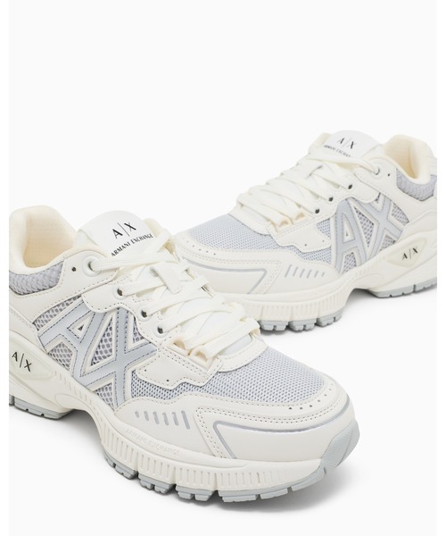 90年代のスタイルからインスパイアされたデザインのレースアップスニーカー。 サイドに配されたAXロゴのポイントはもちろん、アッパーのメッシュ感あふれる仕様とシャイニーなライン使いが印象的です。 デイリー使いにはもちろん、ジャケットスタイルのはずしアイテムとしても活躍します。 ▶お気に入り登録 ハートマークをクリックして、入荷情報・再入荷・セール情報を受け取れます。 【A|X アルマーニ エクスチェンジ ブランド紹介】 A|X アルマーニ エクスチェンジは、ジョルジオ アルマーニのイタリアンスピリットを継承しつつ、都会的でエネルギッシュなテイストを取り入れたカジュアルなスタイルを提案します。 ※こちらはジョルジオ アルマーニ ジャパン株式会社の公式オンラインストアです。アフターサービスにつきましては、当サイト内サポートセンターへご連絡下さい。