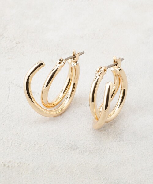 メタルラインがクロスしたようなデザインのピアス。【デザイン】メタルラインの重なりがモードな印象のピアス。バックキャッチがないタイプなので、キャッチをなくす心配もなく簡単に着脱できるのも嬉しい。シンプルなデザインなので、どんなスタイルにも合わせることができ、デイリー使いしやすいデザインです。※照明の関係により、実際よりも色味が違って見える場合があります。また、パソコン・スマートフォンなどの環境により、若干製品と画像のカラーが異なる場合もございます。店舗へのお問い合わせ商品番号:769-82069●製品寸法:00:モチーフH1.7cm モチーフW0.8cm モチーフD2cm備考: