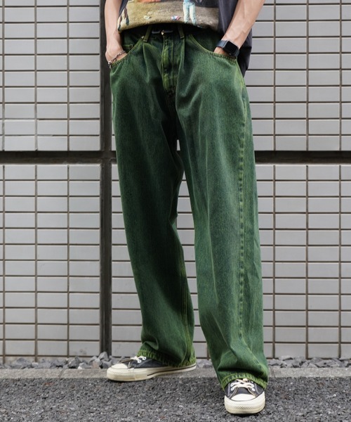GUNG HO / ガンホー DENIM BAGGY PANTS OVER DYE バギーデニムパンツ オーバーダイ カラーデニムパープルとグリーンのオーバーダイを施したこちらはC.E.L.STORE EXCLUSIVEモデル。ビッグサイズのデニムにタックを付けリメイクしたようなデザインに仕上げたバギーデニム。テーパードを抑えたワイドなバギーシルエットを採用。柔らかいデニムを使用しており、落ち感・履き心地も良い一本となっています。・ベーシックな5ポケットディテールをアレンジしたデニムパンツ・フロントにはワンタック・程よいオンスの柔らかいデニム素材を採用・オーバーダイ、ウォッシュを施し自然なカラーリングとなっています・バックポケット右には型押しレザーのブランドロゴがワンポイントで付きます〈コーディネート〉カラーデニムを主役としたコーディネートがおすすめ。中間色であるパープル、グリーンはトップスのカラーリングを意外と選ばない万能性も持ち合わせています。トップスをコンパクトにしたAラインシルエットと相性抜群のバギーデニムとなっています。【GUNG HO/ガンホー】GUNGHO/ガンホーは 、1972年創業アメリカ・テキサス州Earl's Apparel inc でアパレルブランドとして誕生しました。アメリカに自社工場のある数少ないブランドで、「COMFORT」「STYLE」「DURABILITY」「QUALITY」「LONGWARING」「EASY CARE」の6つの言葉をコンセプトに構成されています。JAPAN EXCLUSIVEラインは、GUNG HOの歴史とコンセプトを元に、Earl's Apparel incの監修で承認した素材、縫製仕様のスペックを元に、こだわりのデザイン&パターンの商品になります。 現代にアップグレードしたユーティリティなGUNG HOのアイテムをリリースします。■商品のお気に入り登録方法(ハートマークをクリック)完売カラーの再入荷通知や、ラスト1点の通知、値下げ時のセール通知も受け取る事が可能です!■C.E.L.STOREのお気に入り登録シーズン毎の新入荷情報はもちろん、再入荷商品やブランドのお得な情報を受け取る事ができます。