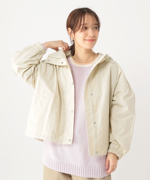 明るい春らしいカラー展開が魅力のマウンテンパーカーーーー【素材】さらりとしたナイロン素材を使用したマウンテンパーカー。【デザイン】ゆったりとしたオーバーサイズシルエットがお洒落な雰囲気のマウンテンパーカー。フロントはバランスのとりやすい短め丈、バックはお尻の隠れる前後差のあるデザインになっています。春らしい明るいカラー展開でアウトドアにもタウンにも多様なシチュエーションで着まわせます。撥水加工を施した素材を使用しているので、ちょっとした汚れや急な雨にも対応。機能性にも優れています。透け感 :やや透ける(アイボリー52で計測しています。)伸縮性 :なし生地の厚さ :普通裏地 :なしポケット :ありナイロンブルゾン ショートブルゾン 撥水ブルゾン ーーー【スタイリング】デニムなどカジュアルな着こなしはもちろん、あえてスラックスや女性らしさのあるワンピース等とのコーディネートもおすすめ。ドルマンスリーブでインナーを着込み易いデザインなので、インナーを調整いただくと長いシーズンで着用いただけます◎
