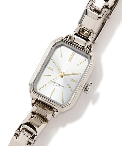 洗練された雰囲気のシルバーメタルウォッチ。ブレスレットのような感覚で身につけられるデザインです。スクエアフェイスの文字盤には秒針つき。オンにもオフシーンにもコーディネートに馴染んでくれるシーズンレスなアイテムです。 ※モデルの着用画像の場合、光の当たり具合により、実際の色味と異なって見えることがございます。