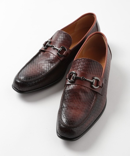 【都会的な品格をまとった大人のビットローファー】 高級感のある牛革を使用した編み込みメッシュデザインのビットローファー。 ビジネスシーンからカジュアルスタイルまで幅広く活躍する一足です。 シンプルながらも洗練されたシルエットで、足元から大人の余裕を演出します。 【デザイン/素材】 アッパーには高級感漂う牛革を採用し、編み込みメッシュが軽やかさをプラス。 ビット部分には控えめなガンメタリックカラーを施し、主張しすぎずどんなコーディネートにも馴染むデザインに仕上げました。 シンプルながらも存在感のあるルックスで、フォーマルからカジュアルまでシームレスに対応する万能な一足です。 【サイズ】 01=24.5cm 02=25.5cm 03=26.5cm ※照明・光の加減、PCやスマートフォンなどの環境により、製品と画像のカラーの見え方が異なる場合がございます。 ※画像はサンプルのため、色味やサイズ等の仕様が変更になる場合がございます。 ※サイズは弊社規定の採寸によって記載しておりますが、若干の個体差が生じる場合がございます。