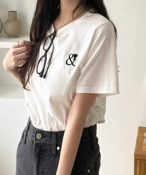 胸元のオシャレ刺繍がTシャツコーデを格上げ! 今っぽいスタイルアップTシャツ 〇さらっとした肌ざわりの綿100%素材 〇大人可愛い胸元のワンポイント刺繍 〇絶妙シルエットで着やせ効果も期待◎ ■デザイン 「&」と「ハート」を組み合わせた胸元の刺繍が大人可愛いTシャツが登場! シンプルながら印象的な刺繍がオシャレさをプラスしてくれます。 大きすぎず、コンパクトすぎない、絶妙サイズ感で今年らしい印象に。 着るだけでトレンド感あるTシャツコーデが叶うおススメの1枚です! ■素材 サラッとした肌ざわりのカットソー素材 綿100%素材なのも嬉しいポイント♪ …………………… 透け感:なし(淡色はややあり) 厚さ:普通 伸縮性:あり 裏地:なし 洗濯方法:洗濯機 …………………… ■コーディネート ゆる過ぎないサイズ感と、コーデのアクセントになるワンポイント刺繍で色々なボトムとも好相性。 今っぽいシルエットで夏のシンプルになりがちなスタイリングもワンランクアップしてくれます♪ シンプルにジャストウエストデニムやスカート等と合わせるのがおススメ! 袖をロールアップしてこなれ感のある着こなしも今っぽくて◎ ※商品によって刺しゅうの出方が異なる場合があります。 -------------------------------------------------------------- ※サイズ寸法は実際の寸法と多少の誤差がある場合が ございます。 ※ご覧いただいているPC/WEB環境や撮影環境により、 多少色味が異なって見える場合がございます。 【お買い物をよりお楽しみいただく為に】 ▼商品のお気に入り登録をおすすめします♪ 『♡をクリック!』 完売カラーの再入荷やラスト1点の追加、 セールの際の通知を受ける事ができます。 ブランドのお気に入り登録もご一緒にお願い致します。 --------------------------------------------------------------