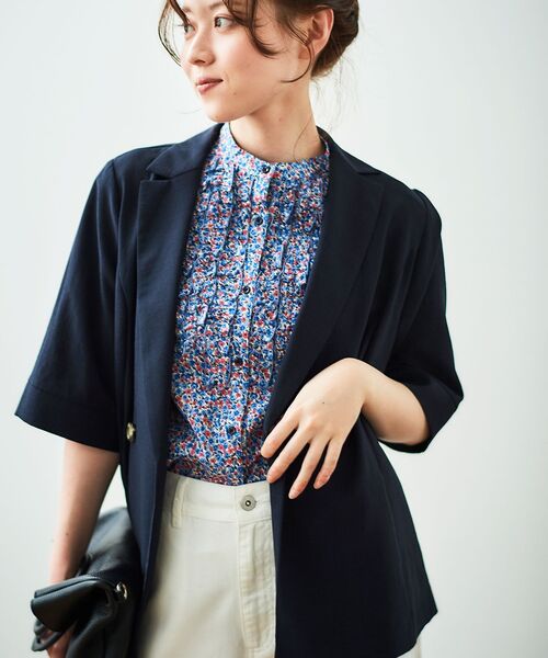 昨年大ヒットのジャケットが登場! 今季は新色【ライトグレー】を追加しました! 【シャツ感覚でラフに羽織れるハーフスリーブジャケット】 ドライタッチなブッチャー素材でサラッとした着心地。 ●ポイント ダブルあきに程よくゆとりのあるシルエット、ポケットはシンプルなシームポケットで、カッチリしすぎずに着ていただけるデザインに仕上げました。 昨年より袖幅と身幅に少しゆとりを持たせて動きやすさとスッキリ見えをプラス♪ ●おすすめコーデ テーラードカラーできちん感もあるので、オフィススタイルにもオススメ。 同素材のパンツを合わせてセットアップでも着ていただけます。 ※同素材でパンツの展開あり。 (3053055904 タンブラーブッチャータックワイドパンツ) ※取り扱いについては、商品についている洗濯表示にてご確認下さい。 ※照明の関係により、実際よりも色味が違って見える場合がありますまたパソコン・スマートフォンなどの環境により、若干製品と画像のカラーが異なる場合もございます。 ※商品の色味は、商品アップ画像をご参照ください。 【注意事項】 ・画像の商品はサンプルです。 ・サイズ表記はあくまで目安となります。 実際の商品と仕様、加工が若干異なる場合があります。