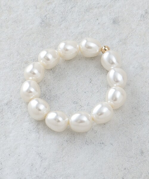 腕に巻いても可愛いビッグフェイクパールのヘアゴム 【デザイン】 存在感のあるビッグフェイクパールがアクセントのヘアゴム。 シンプルなスタイルに華やかさをプラスし、カジュアルからフォーマルまで幅広く使えます。 【着こなしポイント】 まとめ髪やポニーテールに合わせるだけで、スタイリッシュな印象に。 ブレスレットとしても活用できるデザインなので、さまざまなスタイリングが楽しめます。 ※照明の関係により、実際よりも色味が違って見える場合があります。また、パソコン・スマートフォンなどの環境により、若干製品と画像のカラーが異なる場合もございます。 店舗へのお問い合わせ商品番号:C71-32906 ●製品寸法: 00:ゴム部分直径7cm モチーフH1.3cm モチーフW1.5cm 備考: