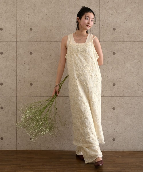 cepoが今季提案するセットアップシリーズ! 今回は〈コード刺繍ニットシリーズ〉がラインナップ♪ 表情のある透かし柄が目をひく、シアーニットのキャミワンピースです。 ◇Point◇ ヴィンテージ感のあるフラワーモチーフをコード刺繍で散りばめたシアーニットのキャミワンピースです。 涼し気な透け感のあるニット素材を使用しています。 肩のストラップは調節可能なのでお好きな着丈に変えられます。 さらにこのストラップ、結び方を変えればホルターネックにもできちゃいます。 ひざ下まで裏地が付いているので透け感を気にすることなし! トップスがシンプルでもコーデがまとまっちゃう、万能キャミワンピースです◎。 同素材・同カラーのシャツブラウスやラップスカート、イージーパンツにベストも展開! こなれた春夏セットアップコーデの完成です♪ 特にシャツブラウスとのレイヤードコーデはおすすめ! ・CCB-0421 ニットコード刺繍シャツブラウス ・CCB-0422 ニットコード刺繍イージーパンツ ・CCB-0423 ニットコード刺繍ラップスカート ・CCB-0461 ニットコード刺繍ベスト ◇Material◇ シワになりずらいポリエステルのニット生地を使用。 とても柔らかく軽い着心地です。小さくまとめられるから旅行先でも使えます! 肩ひもは長さの調節が可能です。 ◇Coordinate◇ cepoが提案するセットアップコーデはブラウス+ベスト+キャミワンピース! 春夏のイチ押し、肌見せヘルシーコーデの完成です◎。 もちろん単体でも使いやすいキャミワンピです。裏地が付いてるので1枚で着れますし、下にデニムを履いてレイヤードコーデもおすすめ。 夏はシンプルTの上にバサッと着て、サンダル履いてゆるっとコーデでで決まり◎。 ※照明や天候により実際の色味と異なって見える場合がございます。ご了承くださいませ。 【キーワード】 #Y2K#20代#30代#40代#50代#入園式#卒園式#新生活#セットアップ