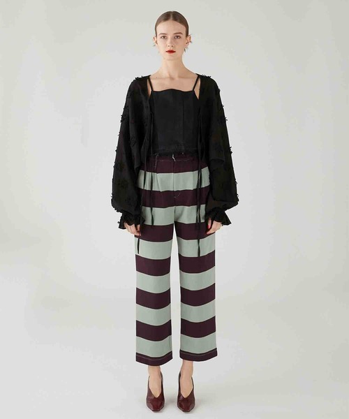 【design】 オリジナルのボーダーカットソーで作成したパンツです。 パターンにこだわったシルエットのバランスが、スウェットパンツやトラックパンツなどのスポーツアイテムとは一線を画すパンツに。 単体使いはもちろん、2way border ponchoとセットアップで着ていただくのもオススメです。 【crinkle crinkle crinkle】 Anything your heart desires will come to you… その時々に感じる感覚を、 素直に自由に魔法をかけるように表現。 自分らしく纏える、愛に溢れた服を提案します。 「crinkle」=「シワ」という意味。 ナチュラルなシワ感を出す工程を「クリンクル加工」と言い、インドの商品でよく見る技法です。 アイロンいらずで、扱いやすくて、シワになってもそれさえ愛おしいと思えるものになるように。 天然素材で表現することでクラフト感が入るので、デザイン性の高いものもカジュアルに楽しんでもらえるように。 呪文のようにリズミカルでハッピーな気分になり、ブランド名が何だかわからないのが面白いというディレクターの思いから 「crinkle」の単語を3つ並べて「crinkle crinkle crinkle」というブランド名に。 お洋服を着ることによって今日の私は可愛いなと思えたり、裸では叶わないことを衣服が叶えてくれる。 そんな呪文のように魔法がかかればいいな、という意味も込めています。 【お買い物をよりお楽しみいただくために】 ■商品のお気に入り登録(ハートマークをクリック) 完売カラーの再入荷通知や、在庫ラスト1点の通知、セールの通知を受け取ることができます。 ■ブランドのお気に入り登録 新商品がUPされたり売り切れ商品が再入荷したときなど、いち早くブランドのお得な情報を受け取ることができます。 是非ご利用頂き、お買い物をお楽しみください。