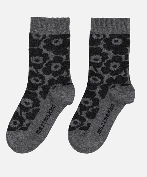 【テキスタイルデザイン:Maija Isola(マイヤ・イソラ)】 Unikko(ウニッコ):花 花をモチーフにした愛らしいUnikko柄のキッズソックス。程よく厚みのある柔らかな肌触り。ソフトな口ゴムが快適な履き心地です。足底にはブランドロゴを配置しています。デイリーに活躍するアイテムはギフトとしてもおすすめ。 ※断裁により商品ひとつずつの柄の出かたが異なるため、表示画像のディテールと多少異なるデザインのものが届く場合がございます。 予めご了承ください。 <marimekko 《サイズ》※サイズは目安です。参考までにご覧ください。> サイズ 19-21 (12-13cm) 22-24 (14-15cm) 25-27 (16-17cm) 28-30 (18-19cm) 31-33 (20-21cm)