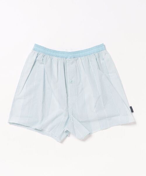 様々なギンガム柄を組み合わせストライプ状に織り上げた薄手の新素材。 柄の切り替え部分のフリンジがアクセントに。 メンズのトランクスは、肌への密着が少なくリラックスタイムにおすすめ。 前ボタン付き。