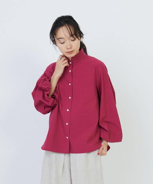 淡いピンクと鮮やかなカシスカラーが春らしいブラウス。バルーンスリーブがほどよい甘さを演出。 【素材】 適度なハリ感のあるコットンブロードを使用。 滋賀県近江産地の巧みな染色技法を用いオリジナルカラーでの展開です。 染色前に生地を繰り返し揉みこむことで、洗いざらしのようなシワ感とソフトな膨らみ感があります。 さらに、仕上げに反発性を加え生地に動きを持たせています。 【アイテム】 袖に特徴のあるブラウス。 襟は短めのグラッドストーン・カラーで凛とした印象に仕立てています。 特徴の袖は、アンティークに見られるカンヌキ留めを用いたバルーン仕様。 甘さをきりっとした襟でしめたバランスの取れた1枚です。 ※画像の商品はサンプルです。実際の商品とは仕様・加工・サイズ・素材が若干異なる場合がございます。 ※画像の商品は光の照射や角度により、実物と色味が異なる場合がございます。予めご了承ください。 ---------------------------------------------------------------------- ■洗濯:手洗い○ ■透け感:オフホワイトはややあり ■裏地:なし ■伸縮性:なし ■光沢感:なし ---------------------------------------------------------------------- 【ブランド情報】 LOISIR <ロワズィール> 上質なリネンがベース。 天然素材の心地よさにデザイン性を重ねた大人のためのスタンダード。 袖を通した時にわかる普遍性とデザイン性、そして清潔感。 リラックスした雰囲気がありながらも細部まで行き届いた凛とした作りは、 こころに寄り添うような贅沢な着心地。 ずっと愛される服を目指して。 ---------------------------------------------------------------------- 【お気に入り登録】がオススメです!! □商品のお気に入り登録□ 再入荷、残り1点、セールなどの通知を受け取ることができます。 →商品ページ ♡ をクリック ■ショップのお気に入り登録■ 新商品や再入荷、クーポン発行、ショップニュースなど、いち早くショップの情報を受け取ることができます。 →「♡お気に入りショップに追加」 をクリック ---------------------------------------------------------------------- #長袖