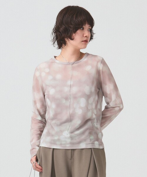 きらめく光を纏う■デザイン〈RBS(アールビーエス)〉オリジナルのプリントを施したクルーネックトップス。 異なる色合いがバランスよくちりばめられ、光の粒がきらめくような幻想的な雰囲気を演出します。 程よい透け感のあるシアー素材を使用し、シーズンを問わず幅広く活躍する一枚です。■コーディネート1枚ではもちろん、キャミワンピースやジレなどインナーアイテムとしてもおすすめです。■サイズボディはタイトすぎないよう程よくゆとりを持たせたシルエットに仕上げています。■素材シアー感とシャリ感のある素材を使用しています。■ケア方法洗濯可(詳細は商品についている品質表示ラベルをご覧ください)生地の厚さ:薄手透け感:あり伸縮性:ややあり光沢感:ややあり裏地:なし【スタッフレビュー】スタッフ:saori KATO身長:160cm / 普段サイズ:S / 着用サイズ:ONE SIZEサイズ感: 程よくゆとりのあるサイズ感。素材感: やや透け感があり、軽い着心地。ポイント: インナー使いは勿論、1枚で着ても様になるトップスです。※こちらの商品は柄の出方が1点ずつ異なります。柄位置のご指定はお受けできかねます。あらかじめご了承ください。※光の当たり具合やパソコンなどの閲覧環境によって実際の色味と異なって見える場合がございます。予めご了承ください。※商品の色味は商品単体で撮影した画像をご参照ください。RBS/アールビーエス<Ray BEAMS>から誕生したブランド<RBS>。大人でもこどもでもない、カジュアルでもコンサバティブでもない。何にも属さない、ニュートラルで曖昧なスタイルがいい。好きなモノは多いけれど、本当に好きなモノは変わらない。概念にとらわれず、ファッションを心から楽しむ女性に向けて、上質な素材とディテールを楽しむコンテンポラリーウエアを展開。クリーンでエフォートレスなスタイルを提案します。