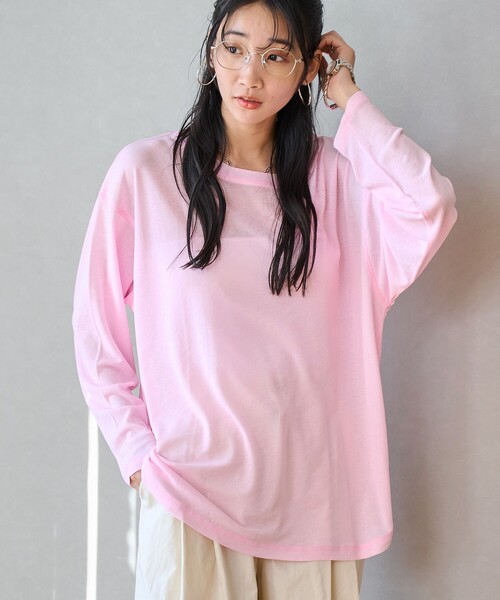 シアー素材ならではの表情で着こなしにトレンド感 ■デザイン/素材 薄手で繊細な透け感があるプルオーバー。 洗練されたシンプルデザインで仕上げ、トレンドライクな素材感が引き立つ1枚です。 ゆるりとしたリラックスシルエットで幅広い着こなしに◎ シンプルなタンクトップやキャミソールを合わせたレイヤードスタイルがおすすめです。 スウェットやニットなどのインにも活躍するので、シーズン問わず楽しめます。 しなやかで軽い着心地のポリエステル素材。 扱いやすくお手入れも簡単で、気軽に着用が可能。 透け感:薄い 生地の厚さ:やや薄い 光沢感:なし 裏地:なし 家庭洗濯:可能(ネット使用) 【注意点】 ※撮影商品はサンプルの為、実際の仕様と異なる場合がございます。 ※画像の商品は光の照射や角度、お使いのモニター環境により、実物と色味が異なる場合がございます。スタジオ物撮りの画像が実物の色味に一番近くなっております。 ※予約商品の場合、お届け予定はあくまでも目安となります。 生産の都合上、お届け時期が前後したり実店舗入荷時期とずれる場合がございますので、あらかじめご了承ください。 品名:スソラウンドシアーPO 品番:76206020533