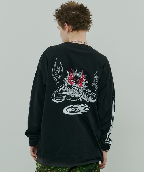 【Johann×AIVER BOYロンTEE】 アーティスト“Johann”とAIVER初のコラボレーションアイテム 威圧的なBOYにファイヤーグラフィックをあしらい、燃えるカウンター精神をビジュアル化。 ティースジュエリーの4文字は見る者に問いかける。 あなたはREALか、それともFAKEか? Johann氏に特別に書き下ろしてもらったBOYを背面にプリントした長袖Tシャツ。 AIVERのロゴもJohann氏に依頼した特別仕様。 袖にはファイヤーパターンとAを組み合わせ、AIVERのロゴをプリントし、前身頃右胸にはJohann氏のロゴを刺繡したエクスクルーシブアイテム。 25'SSよりAIVER定番で使用している生地をアップグレード。 16/-の太目の糸を使用したしっかりとしたコシのある綿生地を使用。 生地の段階でウォッシュをかけている為、ゴワゴワせず厚みがありながらもふわっとした質感。 更に25'SSよりシルケット・シルキー加工を加え洗いをかけていてもさらさらで滑らかな柔らかい肌触りが特徴。 <問い合わせ番号/ACZUC251005/AC00000056> 【Johann/ヨハン】 東京を拠点とするアーティスト。 映画、音楽、漫画、ユースカルチャーから影響受け、ストリートに生きる反骨心を持ったティーンエイジャーを軸としたアートを展開。その画風はバイオレンスであり、見る者の初期衝動を煽る。2021年にはDragon Ashのジャケット・MVアニメーションを担当。その後も(sic)boy、TheBONEZ、RiLなど、様々なアーティストのアートワークを手掛ける。その他、イベントフライヤーやアパレルコラボ、広告、個展など、活躍の場は多岐に渡る。 ※画像つきましては、光の反射などによって実物と色味が異なって見える場合があります。 ※商品画像はサンプルの為、色味やサイズ等の仕様に変更がある場合があります。 ※繊維製品の為1~2cmの誤差がある場合があります。予めご了承下さい。 <商品のお気に入り登録> 再入荷、残り1点、セールなどの通知を受け取ることが出来ます。 <ブランドお気に入り登録> 新商品や再入荷、ショップのおすすめトピックスなど、 いち早くブランドのお得な情報を受け取ることが出来ます。