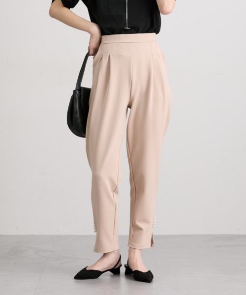 オフィススタイルにも対応可能!裾パール調ボタン付テーパードパンツ ■デザイン ・裾スリット入で、パール風ボタンもついたシンプルだけど、キレイ見えのテーパードパンツ♪ ・フロントにはタック入で、シルエットもキレイに見せてくれます! ・後ろが総ゴム入で、フロント部分はフラットなデザインなので、トップスをインしてもキレイな着こなしが可能です♪ ■素材 キレイ見えするカルゼジョーゼット素材を使用 ■おすすめのスタイリング トップスはインしても、オーバーに着用しても、どちらでもキレイに着こなしが可能なおすすめテーパードパンツ! 裾スリット×裾パール調ボタンで、夏場で足元がサンダルやミュールスタイルでもOK♪ 今の季節は、ニットトップスを着合わせても◎暑くなると半袖トップスやシャツブラウスでの相性も◎ ーーー明日ちょっと褒められる服ーーー 大人トレンドを意識したこだわりのアイテムと着こなしでアナタの毎日に輝きを。 ただシンプルできれいなだけじゃ物足りない。 カジュアルすぎず、スタイリッシュで大人の品性を感じる着こなしに。 そんな、こなれたオシャレを楽しむ女性に寄り添う、 新鮮なリアルクローズをご提案します。 <仕様> ポリエステル97%・ポリウレタン3% 前ポケット2 後ポケット2 後ろ総ゴム <洗濯方法> 洗濯機OK ネット使用 ■キーワード 20代,30代,40代,きれいめカジュアル,きれかじ,オフィスカジュアル,キレカジ,冬,大人,大人カジュアル,通勤カジュアル,パール調ボタン,テーパードパンツ,キレイめパンツ,通勤スタイル,ONスタイル,オフィスコーデ,デートコーデ,甘め,入学式ママ,ONOFF使えるセレモニーアイテム,セレモニー,入園式,入園式ママ,入学式,卒園式ママ,卒業式ママ,オケージョン,入卒,入卒コーデ,入卒ママコーデ,セレモニーコーデ,春,春服