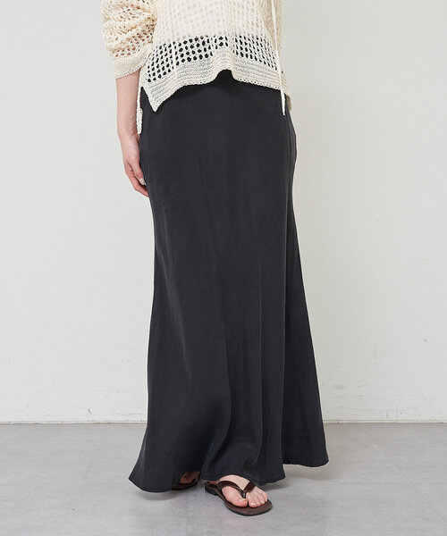 立体的な美シルエットが魅力的なスカート 女性らしく、程よい光沢感のあるキュプラスカート。 ほんのりとしたマーメードラインが下半身を綺麗に見せてくれるミニマルな一品になっています。 ウエストゴム仕様でリラックスして穿けるのも嬉しいポイント。 微光沢なので綺麗目になり過ぎず、カジュアルな装いにも合わせやすいデザインです。 テロンとした落ち感のある素材は大人が合わせやすく、シーズンレスで着用頂けます。 ■コーディネート 足元はヒールで大人っぽくもスニーカーでカジュアルにも合わせられる万能スカート。 これからのシーズン、トップスはTシャツやスウェットなどとの相性も◎ ボリュームのあるトップスと合わせてもバランスよく着て頂けます。 ■オススメトップス ・透かし編みVネックニットベスト ・Vネックリネンシャツ ・ミリタリーリネンシャツジャケット ・シアーペプラムブラウス - - - - - - - - - - - - - - - 透け感:オフのみややあり 裏地:あり 伸縮性:ややあり 光沢感:あり 生地の厚さ:普通 取り扱い:手洗い不可 - - - - - - - - - - - - - - - 【注意事項】 ※撮影環境により、光の当たり具合で色味が違って見える場合があります。あらかじめご了承下さい。 ※画像はサンプルの為、実際にお届けする商品と仕様が異なる場合がございます。 ※この製品はシワになりやすく、水に濡れると縮みが生じたり、強度が低下します。ご家庭での水洗いは避け、ドライクリーニングへお出しください。 ※部分的な水濡れや汗などの汚れが付着すると跡が残り、クリーニングへ出しても取れない場合があります。 ※シワになりましたら、乾熱アイロンでお手入れください。スチームはお避け下さい。 ※この製品はデザインの特徴を生かすため、生地をヨコ地やバイアス地(斜め)に使用しています。 ハンガーにかけておくと型くずれします。たたんで平らな状態で保管してください。 アイロンをかける際は生地の目に沿ってかけて下さい ■「商品のお気に入り登録」で ハートマークをクリックし、お好きなカラーを選んでお気に入りに登録すると 入荷情報や残り1点の通知、完売カラーの再入荷、セール情報などを受け取ることができます。 登録して頂いた商品だけが対象となる、あなただけのタイムセールが開催されることも! ■「ブランドのお気に入り登録」で 新商品や再入荷など、いち早くSHENERYのお得な情報を 受け取ることができますので、ご登録をおすすめします!