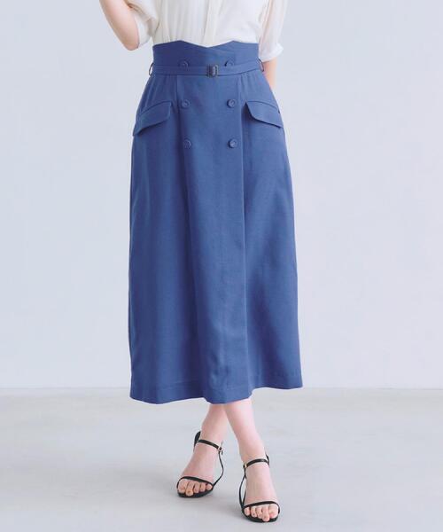 お洒落にきまる トレンチディティールスカート 【デザイン】 マニッシュなトレンチ風のディティールを施したハイウエストスカートです。 フラップポケットや共の平くるみボタンで洗練された大人ムード漂う1枚。 ハイウエストデザインでスタイルアップ見えし、メタル調のバックルがアクセントになった 共のナローベルト付きで、メリハリのあるウエストデザインとなっています。 細すぎないセミタイトシルエットがすっきり見えします。 後ろウエスト中心部分にはゴムギャザーが入っているので、ウエスト周りも優しい穿き心地です。 下前奥側スリット入りで足さばきも楽です。 【素材】 カナパを思わせるようなラスティックな麻調合繊素材を使用。 ざっくり織った表情ある見えがかりがムードがあり高見えする1枚です。 【スタイリング】 ハイウエストデザインなのできちんと感のあるブラウスや ベーシックなリブのニットを合わせてキレイめフェミニンな着こなしがおススメです。 きちんと感があり上品なスカートなのでお仕事やお出掛けにピッタリの1枚です。 【仕様】 ・ポケット数:横×2 ・ウエスト後ろゴム ・裏地あり ※裏地のない部分はやや透け感があります。 ※照明の関係により、実際よりも色味が違って見える場合があります。また、パソコン・スマートフォンなどの環境により、若干製品と画像のカラーが異なる場合もございます。 【25SS】 モデル情報:身長166cm B80 W59 H86 着用サイズ:02(M) 店舗へのお問い合わせ商品番号:768-72020 ●製品寸法: 01(S):W67~76cm H97cm 総丈83cm 02(M):W70~79cm H100cm 総丈85cm 03(L):W73~82cm H103cm 総丈87cm 04(LL):W76~85cm H106cm 総丈89cm 05(3L):W79~88cm H109cm 総丈89cm 備考: