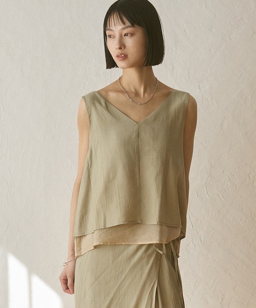 表面感ある素材と、シアー素材の組み合わせが大人っぽいゆるタンクです。 ■商品ポイント 前明きも程よい深さで、ヘルシーに着て頂けます。 ■素材 レーヨンナイロンで落ち感がある生地にシワ加工を施しており、肌離れの良い素材です。 ■コーディネート タンクやTシャツの上にレイヤードとしてお使いいただけます。 同素材の半袖シャツジャケット(WGN5047)とのセットもおすすめです。 ------------------------------ 伸縮性:なし 透け感:アイボリーのみ若干透けあり 裏地:なし ------------------------------ ※お取り扱いについては、商品についている品質表示をご確認下さい。また、モニター・環境等で実際の商品と多少色が異なって表示される場合がございます。予めご了承下さい。 ◆商品のお気に入り登録◆ 完売カラーの再入荷通知を受け取ることができます。ぜひご登録下さい。 ◆ブランドのお気に入り登録◆ 新商品や再入荷など、ブランドのお得情報を受け取ることができます。ぜひご登録下さい。 ※他のキャンペーンにより、期間中に価格が変動する場合があります。 ※セールは予告なく終了させていただく場合もあります。
