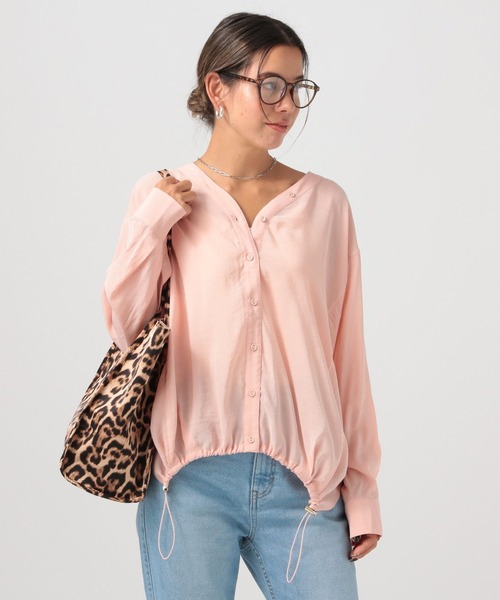 ドロストでシルエットを調節できるVネックブラウスーーー★おすすめポイント★[1]トレンドのシアー素材[2]広がり過ぎないコクーンシルエット[3]サイドスリット入り[4]首元がキレイに見えるVネック[5]春らしい4色展開ーーー[fabric]レーヨン・ナイロンの、微光沢で適度な落ち感があるトレンドのシアー素材を使用。[design]前裾のドロスト仕様と、後裾のラウンドシルエットのコントラストがポイント。裾にはタックを入れていて、広がり過ぎずコクーンシルエットが叶います。前開きの緩Vネック開きも首元を綺麗に見せてくれて、1番上のボタンとホールは、あえて留めず、デザインアクセントにしています。[styling]1枚で主役になるデザインシャツで、かつどんなボトムとも相性が良くマルチにスタイリング出来るアイテム。※屋外での撮影画像は光の加減で実際の商品より明るく見えたり、風合いが異なって見える場合がございます。 商品の色味はスタジオ撮影の画像を参考にして下さい。-------------------------------------≪お買い物をよりお楽しみいただくために≫◆商品のお気に入り登録(ハートマークをクリック)完売カラーの再入荷通知や、完売間近の通知、セールの通知も受けることができます。◆ブランドのお気に入り登録新商品や再入荷など、いち早くブランドのお得な情報を受け取ることができます。-------------------------------------