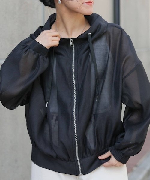 【カジュアルなパーカーをトレンドっぽくアップデート】さらっと薄手に軽やかに羽織れるシアー素材のアウターです。ゆったりとしたシルエットでカジュアルアイテムはもちろん、レディライクなコーディネートとも相性抜群です。裾のギャザー部分がこなれ感を演出してくれるのも嬉しいポイント◎【商品ポイント】・首元までしっかり絞めれるフルジップ・裾のギャザー部分が女性らしい印象に◎・軽やかなシアー素材----------------------------------------------------■商品特徴洗濯方法:手洗い可裏地:なし透け感:あり伸縮性:なし光沢感:なし生地の厚さ:薄め----------------------------------------------------■素材ポリエステル100%----------------------------------------------------※着用、お取り扱いの際は、商品についている品質表示とアテンションタグを必ずご確認下さい。※商品タグに記載されている商品名がWEBでの表記名と異なる場合があります。※画像の商品はサンプルです。実際の商品と仕様、加工、サイズが若干異なる場合がございます。 ※照明の関係により、実際よりもやや明るく見える場合がございます。またパソコンなどの環境により、若干製品と画像のカラーが異なる場合もございます。予めご了承くださいませ。【お気に入り登録】してお得な情報をCHECK!!・「商品のお気に入り登録」で再入荷通知や、ラストの通知、セール通知も受け取ることができます。・「ブランドのお気に入り登録」で新商品や再入荷など、お得な情報を受け取ることができます。