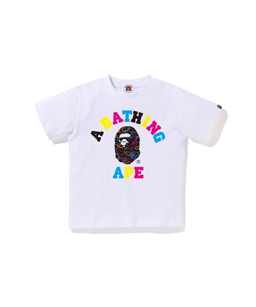 2007年に誕生したオリジナルカモフラージュ柄“NEON CAMO”を使用したアイテムが、発売開始。鮮やかな色合いとコントラストが特徴のネオンカラー。スケールを150%拡大し、より大胆な印象に仕上げました。コットン天竺を使用した着心地の良い、キッズサイズのショートスリーブTシャツ。 フロントにNEON CAMO柄のCOLLEGE ロゴをラバープリントしたデザイン。 レギュラーフィットシルエットで、インナーにも、メイン使いにも着用可能なアイテム。
