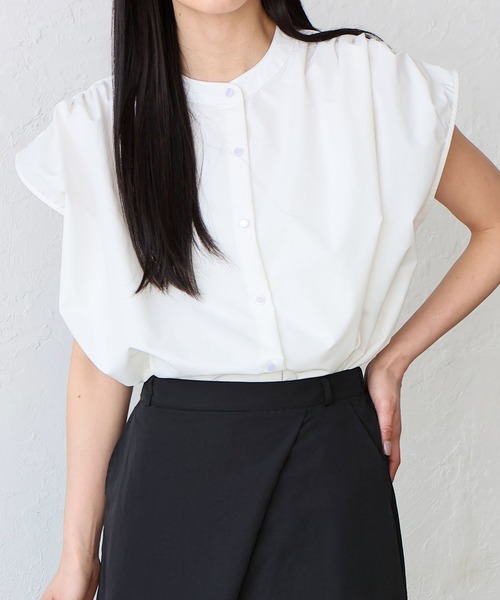 【デザイン】 フレンチスリーブバンドカラートップス ブラウス 着映えするのに抜け感のある、大人コーデが完成する万能フレンチスリーブのブラウス 生地はハリ感のある素材を使用しており、シワになりにくくお取り扱いしやすいのが特徴。 バスト部分はゆったり目のデザインでリラックスして着用できます。 デザインの特徴は肩先のギャザーと袖口の仕上げで、 ほんのり女性らしい洗練された印象とふんわりとした雰囲気を与えてくれます。 重ね着もしやすいデザインなので、ジャケットと合わせるとオフィスカジュアルコーデも完成します。 すっきりとしたバンドカラーの首元に肩のギャザーと後ろヨーク仕様がポイント。 袖部分のフレンチスリーブは肩幅や二の腕周りが程よく肌見えするので着やせ、 華奢見せしてくれる体型カバー効果も嬉しいポイント。 手洗い可能でご自宅でのイージーケアができるのも嬉しいポイント。 デニムパンツや、スラックスはもちろんシフォンスカートやレーススカート、タイトスカート等 スタイリングしやすいトップスアイテムでデイリーファッションを楽しんでください。 ハリのある生地感なので、セレモニー・ハレの日にもおすすめです♡ ※末永くご愛用いただく為にアテンションタグを必ずご確認の上、お取り扱いとご着用をお願いいたします。 ※ニット素材となります為、長さ・幅に伸縮が出ることがあり若干の個体差がございます。 ※照明の関係により、実際よりも色味が違って見える場合があります。 またパソコン・スマートフォンなどの環境により、 若干製品と画像のカラーが異なる場合もございます。予めご了承ください。 【サイズ等】 サイズ:FREE 総丈:72.5cm 身幅:84.5cm 袖丈:19.5cm 袖口幅:22.5cm 重量:250g 素材:ポリエステル100% …………………… 伸縮性:なし 裏地:なし 透け感:なし 生地の厚さ:普通 ポケット:なし …………………… 【お取り扱い上の御注意】 ・繊維および染料の性質上、汗や水に濡れますと色落ちすることがあります。 ・長時間の水などの浸漬や浸け置き洗いは、縮みや色落ちの原因となりますのでお避け下さい。 ・洗濯の際は他の物と分けて洗ってください。 ・洗濯後は直ちに脱水し形を整えすばやく干してください。 ・家庭洗濯時のタンブル乾燥はお避け下さい。 ・濡れた状態での他の物との擦れによる色移りにご注意ください。 [カラー] ブラック・ホワイト・ライトグレー モデル身長:172cm/着用サイズ:FREE ◆商品のお気に入り登録◆ 完売カラーの再入荷通知や、ラスト1点の通知、 セールの通知も受け取ることができますので、是非ご登録ください。 ◆ブランドのお気に入り登録◆ 新商品や再入荷などの情報を受け取ることができますので、是非ご登録ください。