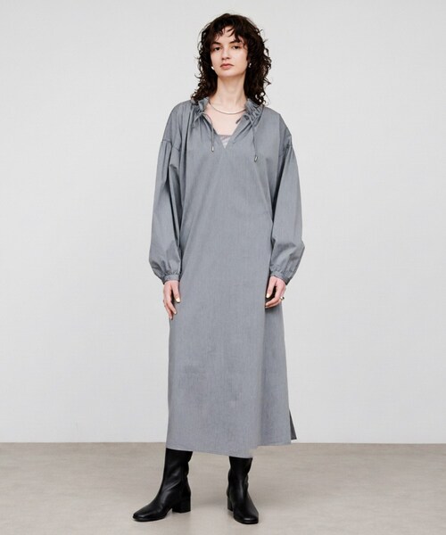 衿元のギャザーがアクセントのフォルムワンピース 【デザイン】 ・衿元のギャザーとドローストリングがアクセントになったモダンな一枚。 ・ゆとりのある袖とストレートラインのシルエットが、大人の余裕を感じさせる上品な仕上がり。 ・程よいハリ感があり立体感のあるデザインが特徴的。 ややオーバーサイズで自然に体系カバーも叶う。 【素材】 ・コットンブレンドのナチュラルな風合いの素材感。 ※ウォッシャブル加工(手洗い可能) 【着こなしポイント】 ・ゆったりしたシルエットは、一枚でさらりと着るだけでモードな印象が完成。 ・衿元をアレンジして表情を変化させて、ラクちんから大人なスタイルまで幅広く活躍。 ーーーーーーーーーーーーーーーーーーーーーーーーーーーーーー 気になるアイテムはお気に入り登録がおすすめ! お気に入り登録で、再入荷通知やお値下げ情報をお知らせ。 お得な情報をいち早くお届けいたします! アイテムページにある、ハートマークをクリックして追加できます。 ーーーーーーーーーーーーーーーーーーーーーーーーーーーーーー ※照明の関係により、実際よりも色味が違って見える場合があります。また、パソコン・スマートフォンなどの環境により、若干製品と画像のカラーが異なる場合もございます。 店舗へのお問い合わせ商品番号:R91-52003 ●製品寸法: 01(S):着丈119cm B137cm 袖丈50cm 肩幅53cm 02(M):着丈120cm B140cm 袖丈51cm 肩幅54cm 03(L):着丈122cm B143cm 袖丈52cm 肩幅55cm 備考: