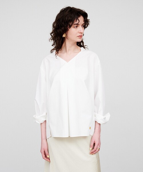 ボリュームスリーブが着映えるタックフォルムシャツ 【デザイン】 ・デイリーから通勤まで幅広く活躍できるアイテム。 ・顔周りをすっきり見せるVネックがデコルテを美しく引き立てる。 ・ゆったりとしたボリュームスリーブがトレンド感と女性らしさを演出。 ・背面のタックディテールで奥行きのあるシルエットをプラス。 【素材】 ・適度なハリ感のある素材。 ・軽量でさらっとした素材。 ※ウォッシャブル加工(手洗い可能) 【着こなしポイント】 ・テーパードパンツと合わせれば、通勤にぴったりなシャープなコーデに。 ・タイトスカートやフレアスカートで、程よくフェミニンなスタイリングにもマッチ。 ・ベルトやアクセサリーでウエストをマークして旬なメリハリコーデもおすすめ。 ーーーーーーーーーーーーーーーーーーーーーーーーーーーーーー 気になるアイテムはお気に入り登録がおすすめ! お気に入り登録で、再入荷通知やお値下げ情報をお知らせ。 お得な情報をいち早くお届けいたします! アイテムページにある、ハートマークをクリックして追加できます。 ーーーーーーーーーーーーーーーーーーーーーーーーーーーーーー ※照明の関係により、実際よりも色味が違って見える場合があります。また、パソコン・スマートフォンなどの環境により、若干製品と画像のカラーが異なる場合もございます。 店舗へのお問い合わせ商品番号:R91-82006 ●製品寸法: 02(M):着丈70cm B114cm 袖丈55cm 肩幅48cm 備考: