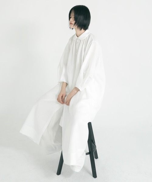 <デザイン> - ボリュームのあるパフスリーブワンピース - 丸みのあるバルーンライクなシルエット - シャーリングを施したラウンドカラー - フロントボタン - サイドポケット - 裏地なし <素材> - ナチュラルなシワ感のあるリネン - 透け感あり ※着用、お取り扱いの際は商品についておりますアテンションタグ、洗濯ネームを必ずご確認ください。 ※モデル撮影画像は、光の当たり具合やパソコンなどの閲覧環境によって、実際の色味と異なって見える場合がございます。商品の色味は商品単体で撮影した詳細画像をご参照ください。 メーカー品番:mone puff dress eunoia | ユノイア 2014年に設立された韓国のブランド。‘’eunoia‘’はギリシャ語で「美しい考え」という意味。韓国の彫刻、建築、陶器、瓦などによく見られる、なだらかな曲線からインスピレーションを受け、黒と白を基調とした繊細なスタイルを表現。豊かなシルエットとクラシックかつユニークな、美しいスタイルを展開しています。