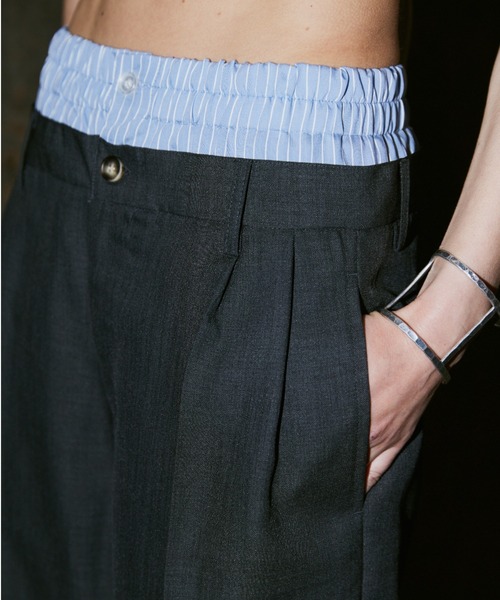 ー ディテール ー 昨年大好評いただいたスラックスが待望の再入荷。 レイヤードライクなディテールが特徴的なダブルウエストは トップスインで存在感のあるスタイリングから フロントのみ少し覗かせる着こなしまで幅広く楽しめます。 モードな印象のブラックとカジュアルなチャコールの2色展開。 【色味に関しての注意事項】 商品画像は、ストロボなど撮影機器の使用や光の当たり具合、 お使いのスマートフォンやパソコンなどの閲覧環境により、実際の色味と異なって見える場合がございます。 予めご了承ください。 【SNS動画掲載アイテム】 @aic_official 上記の公式インスタグラムアカウントにて着回し動画を掲載しております。 是非ご覧くださいませ。 ★お取り扱い注意事項★ 下記をご確認いただきご了承の上、ご購入ください。 ・着用中の摩擦などにより、ピリング(毛玉)が生じる場合があります。 ・洗濯の際は色落ちしますので単独で洗い、湿気を含んだ状態や水につけたままで放置しないでください。 ・濃色の製品は、摩擦や汗、雨などで濡れると、ほかの衣料に色移りする場合がございますので、充分ご注意ください。 ・商品の写真はサンプル品を撮影している為、実際の商品とは仕様や加工、加工によるダメージ、サイズ等が若干異なる場合もございます。 ・初回販売分と生産時期の異なる商品は、色味や加工等若干異なる場合がございます。 ・システムの都合上下げ札の税込み価格表記が商品ページの税込み価格と1円ずれている場合がございます。 ・掲載画像の商品の色味は、屋外や屋内の光の照射や角度により実物と色味が異なる場合がございます。 また表示のサイズ感と実物は若干異なる場合もございますので、 ・着用、お取り扱いの際は、商品についている品質表示とアテンションタグを必ずご確認下さい。