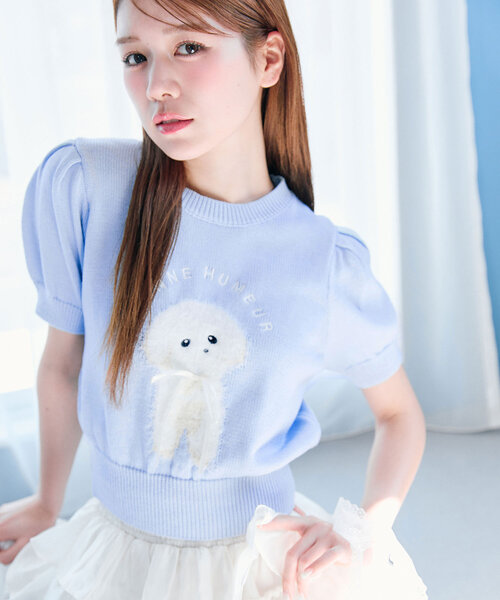 ふわふわアニマルが可愛い春夏にぴったりな半袖ニット ■デザイン ・カラーによって異なる動物たちとリボンがかわいいデザインです。 ・オフは三毛猫、イエローは2匹の猫、サックスは犬、ネイビーはクマです。 ・袖は程よく膨らんだパフスリーブデザインで、体型をカバーしつつ女性らしいシルエットを演出します。 ・柔らかくさらっとした触り心地のニットで、暖かい時期に着てもべたつきにくいです。 ■カラー ・オフ/イエロー/サックス/ネイビーの4色展開 ■スタイリング ・ティアードスカートやプリーツミニスカートと合わせて、可愛らしいフェミニンスタイルがおすすめ。 ・デニムパンツ合わせでカジュアルガーリーな着こなしもかわいいです。 -------------------------------- 裏地:なし 光沢感:なし 透け感:なし 伸縮性:あり 手洗い:可能 タンブラー乾燥:不可 アイロン:150℃まで -------------------------------- model:161cm/166cm ※着用、お取り扱いの際は、商品についている品質表示とアテンションタグを必ずご確認下さい。 ※ご覧のモニター環境や撮影環境により実際の商品と多少色味が異なって見える場合がございます。 ご理解の程よろしくお願いいたします。 ■お気に入り登録のおすす 【気になるアイテムを登録】 ハートをクリックしてお気に入りに登録すると 完売カラーの再入荷やラスト1点の通知、セールの通知を受けとることができます。 【ブランドを登録】 新商品や再入荷、セール通知など、いち早くブランドの情報を受けとることができます。