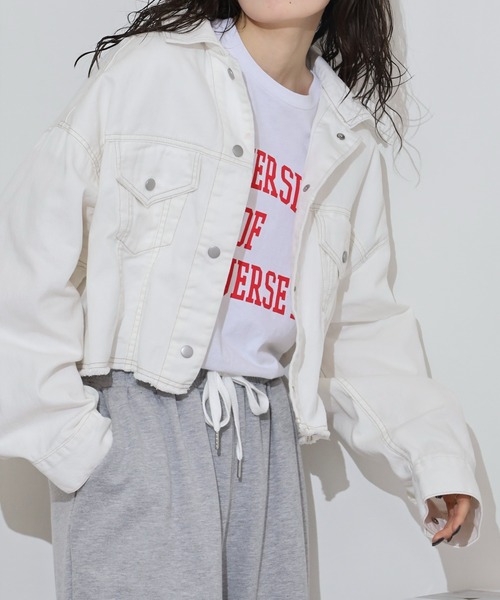 hunch/ハンチ ■デザイン ゆったりとした身幅のあるGジャンです。 アームも広く、袖に入っているタックで立体感のある作りになっています。 ショート丈ですが、後ろは少し長めになっています。 裾の切りっぱなしデザインもかわいいポイントです。 ■素材 軽く、柔らかい10オンスのデニム素材です。 ■スタイリング ショート丈なので、スカートやハイウエストパンツとの相性が良いです! ワンピースの上から羽織ってもスタイルアップして見せてくれます。 Tシャツやスウェット、パーカーと合わせてラフコーデに、サマーニットやラッフルブラウスと合わせてキレイめカジュアルコーデに、インナーを選ばないのも魅力的! キャップやバケットハット、ニット帽、ボディバッグやスマホショルダーなどの小物と合わせるのが◎ カジュアルやストリート、古着MIXなど様々な着こなしができる万能なユニセックスアイテム♪ マルチに使える春先や秋口に大活躍する人気のデニムジャケットです。 『OKシーン』 アウトドア・キャンプ・レジャー・デート・フェス・ドライブ・旅行・新生活・雨の日・スポーツ・イベント・遊園地・通学・ライブ・ゴルフ・20代・30代・40代・春・夏・秋 ■カラー ホワイト・グレー・ライトインディゴブルー --- hunch/ハンチ --- 自分を甘やかす Bitterish clothes DRESS FOR MYSELF おしゃれに悩まないストレスフリーなスタイルを福岡から提案いたします。 フレンチシックカジュアルをベーストレンドをデイリーに取り入れた気軽なウェア。 みんなの ""ちょうどいい"" 服づくりを目指しています。 ごきげんな自分に出会える予感。 kigocochi iicchan ne A-ne 【お買いものをお楽しみいただく為の方法】 ★商品のお気に入り登録★ ・完売カラーの再入荷通知や、ラスト1点の通知、セールの通知も受け取ることができます。 ★ブランドのお気に入り登録★ ・新商品や再入荷など、いち早くブランドのお得な情報を受け取ることができます!
