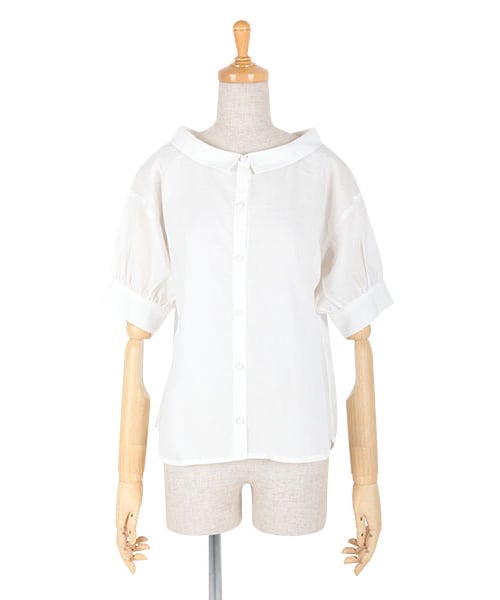 夏にぴったりの衿ぐり広めなオフショルコットンシャツ。 クラシカルな雰囲気の小さめ衿や、程よいパフスリーブのお袖が大人かわいいポイントです。 こだわりのくるみボタンは、お袖にも♡ ベーシックシャツとして万能なホワイトと エレガントで爽やかなストライプの2カラーでご用意しました。 MATERIAL:cotton100% Made in China サイズ:フリー 着丈59cm、胸囲99.5cm、肩幅49.5㎝、ウエスト92cm、袖丈21cm
