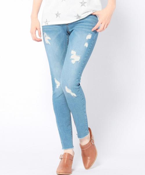 クラッシュスキニーデニム2☆脚全体にフィットしてすっきりと履いていただけるスキニーパンツ。どの角度から見てもぬかり無く美しいシルエットにこだわり、女性らしいシャープなラインに仕上げました。ハード過ぎず程よいクラッシュ加工とカットオフの裾でクールな印象に!ウォッシュをかけた明るいカラーが爽やかで、これからの季節に活躍します。足元にヒールなどを合わせて大人なスタイルにも、スニーカー合わせでカジュアルにも変化するスキニーパンツはぜひ押さえておきたいアイテム♪★ATTENTION:染料が他の衣服等に付着する事があります。また洗濯により徐々に染料が色あせいたしますので取り扱いには品質表示を確認の上ご注意下さい。※着用、お取り扱いの際は商品についておりますアテンションタグ、洗濯ネームを必ずご確認ください。店舗にお問い合わせの際は、全国のAnother Edition店舗まで下記の品名/品番をお申し付け下さい。品名:AEBC CRASH SKINY DNM2品番:56146991989【クラッシュデニム】