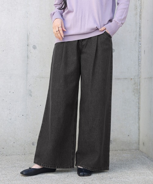 贅沢ワイドシルエットとタックデザインの組み合わせで、ルーズ感がありながらもスッキリした印象のタックデニムパンツ。 こだわりのゆるっとワイドデニム。 タックデザインを施すことで縦長ラインを強調。 絶妙なサイジングでお尻周りをスッキリ見せながら、ルーズシルエットでこなれた雰囲気に。 コットン100%素材で、穿きこむほどに馴染むデニム生地。 程よい厚みでオールシーズン活躍します。 同素材のデニムキャミソールと合わせてセットアップとしてもご着用いただけます。 ▼ 同素材のキャミソール 商品名 『デニムキャミソール』 商品コード:91476152 ブランド品番:25-F006(11tn0bf) ■製品についての注意書き デニム製品につきまして。 デニム製品は、『色落ち』も魅力、風合いの一部となっております。 染色の特質上、発汗や摩擦により色落ちや色移りする場合や、 染料独特のにおいがする場合がございます。 気になる場合は、一度お洗濯していただくことをお勧めします。 入荷時期によって、色合いや風合いが異なる場合がございます。 ご了承の上、ご購入いただきますようお願いいたします。