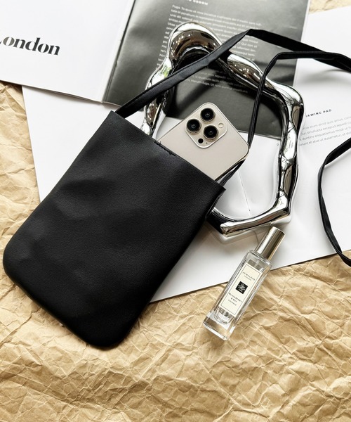 スマホケースが入るミニショルダーバッグ。シンプルなデザインでコーデしやすい。 パスポートなど大切なものを肌身離さず持ち歩くのにもおススメ! ※お使いのモニター環境によって色合いや風合いが違って見える場合がございます。 サイズ 本体:15×20×2 ショルダーストラップ:115