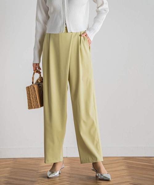 【デザインポイント・着こなしポイント】 アシンメトリーなラップデザインとゆるやかなカーブのシルエットが着映えを叶える新しいパンツ。 マニッシュなムードと女性らしさを兼ね備えたムードでクロップドトップスとの相性抜群です。 後ろウエストはゴム仕様で楽な穿き心地に。 フロントにはギャザーを入れておらずフロントインの着こなしもすっきりときまります。 程よい膨らみ感のあるマットなダブルクロスの素材で、 高密度ならではのフォルムがデザインにマッチした1枚です。 シワになりにくくデイリー使いに扱いやすい素材です。 ---------------------------------- 洗濯方法 家庭洗濯:液温は40℃を限度とし、洗濯機で弱い洗濯ができる。 自然乾燥:日蔭の吊り干しがよい。 アイロン:底面温度110℃を限度としてアイロン仕上げができる。 ドライクリーニング:石油系溶剤による弱いドライクリーニングができる。 ---------------------------------- ※画像の商品はサンプルとなりますので実際の商品と仕様、加工、サイズが若干異なる場合がございます。 ※お客様のモニター環境により実際のお色と多少異なる場合がございます。 ※撮影状況や光の当たり具合により、色合いが異なって見える場合がございます。 ※商品タグに記載されたサイズはヌードサイズです。実際の商品のサイズは商品情報の実寸をご確認ください。 ▼商品のお気に入り登録 ハートマークをクリックし、お好きなカラーを選んでお気に入りに登録 完売カラーの再入荷通知や、ラスト1点の通知、セールの通知も受け取ることができます。 ▼ブランドのお気に入り登録 新商品や再入荷等、いち早くブランドのお得な情報を受け取ることができます。
