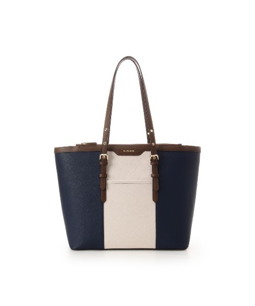 ◇& chouette(アンドシュエット)のバイカラーベルトデザインA4トートバッグ《通勤・通学》 人気のベルトデザインA4トートバッグから新色が登場しました♡ 上品なバイカラーが大人可愛いA4サイズ対応のトートバッグシリーズ。 トレンド感と高級感のあるデザインを、春先にもぴったりなカラーで仕上げました! ▼機能性 ・内装にはベタポケット×2・ファスナーポケット・ドリンクホルダーが付いており機能性◎ ・A4サイズがすっぽり入るサイズ感で、タブレットの入るファスナーポケット、フリントにカードが入るサイズのポケット、と充実しており収納しやすい仕様です! ▼スタイル ・A4サイズの中でも大き目のバッグですが、縦にカラーが切り替えられており、見た目は大きすぎず、すっきりとした見た目でお持ち頂けます。 ・バイカラーが縦割りなので、低身長なかたでもスタイル良く持っていただけます。 ・持ち手が長い為、アウターを羽織られた時でも肩周りがスッキリして持っていただけます。 ・持ち手がベルト風になっているところがかわいく、かっちりとしたデザインではないのでカジュアルスタイルでの通勤・通学にオススメです!! FREE:幅32.5cm/高さ29cm/マチ13cm/持ち手上がり18cm,22cm,26cmに変更可能/重さ860g/
