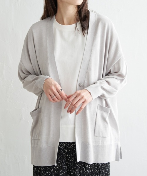 """肌寒い時の羽織りとしてはもちろん、紫外線対策や、室内での冷房対策などにあると便利なさらっとカーディガン。軽量で持ち運びもしやすいため、朝晩で寒暖差のある時期などに活躍します。【素材】昨年人気だった洗えるさらっとカーディガンと同じ素材のニットです。【デザイン】ボタンを1個とポケットを付けて、羽織りとして着やすいデザインにしました。【ikkaポイント】・ブラウスやTシャツに羽織ったときに、着やすいようにVネックに変更しボタンを付けました。・ポケットを付けることで利便性があり、デザインのアクセントになっています。[洗濯方法]洗濯の際はネットを使用してください★《お気に入り登録》でお得な情報がいっぱい★・「商品のお気に入り登録」で再入荷通知や、ラスト1点の通知、セール通知も受け取ることができます。・「ブランドのお気に入り登録」で新商品や再入荷など、お得な情報を受け取ることができます!※商品の色味は、撮影場所や光のあたり具合などにより色味が違って見える場合がございます。また、お客様のお使いのモニター環境などにより色味が違って見える場合がございます。予めご了承の上ご注文下さい。※他のキャンペーンにより、期間中に価格が変動する場合があります。※セールは予告なく終了させていただく場合もあります。"""