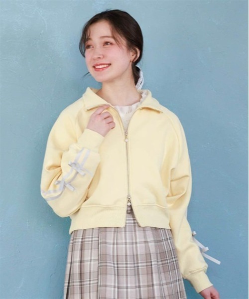 axes femme 2025 spring collection. 【商品紹介】 ふっくらとしたダンボールニット素材のトラックジャケット 【デザイン】 袖のライン×リボンディティールがワンポイントです。ふっくらとしたやわらかく優しい手触りが魅力的なアイテム。 上下どちらも開けられるファスナーでコーディネートの幅が広がります。春夏にぴったりのイエロー・ミントと使いやすいクロの3色展開です。 【コーディネート】 プレッピーなチェック柄やフリルスカートを合わせた古着風コーディネートからキレイめワンピースと合わせたカジュアルミックスコーデまで幅広く活躍します。 ダンボールニットタイトスカート(IM291X34)と合わせてセットアップ着用もオススメです。 ▽ axes femme * アクシーズファム 【Concept】 axes femmeのお洋服であなたのライフスタイルに ほんの少しだけ彩る花が咲きますように。 ブランドを通して、彩る花たちが、 人と人、お客様や作り手たちの想いが世界中に繋がっていきますように。 ベル・エポック(フランスの古き良き時代)にパリジェンヌたちが愛したファッションや文化にルーツをおき、 独自のフェミニンスタイルを楽しむブランド ********************** .。.: お気に入り登録のおすすめ :.。. ∇気になるアイテムを登録∇ ハートをクリックしてお気に入りに登録すると 完売カラーの再入荷やラスト1点の通知、セールの通知を受けとることができます。 ∇ブランドを登録∇ 新商品や再入荷、セール通知など、いち早くブランドの情報を受けとることができます。 是非ご利用頂き、お買い物をお楽しみ下さい。 .。.: 商品について :.。. ・サイト上のカラー名と、お届け商品に記載されているカラー名が異なる場合がございます。 ・商品の色味は、撮影場所や光のあたり具合、お客様のお使いのPCのモニター環境などにより色味が違って見える場合がございます。 予めご了承の上ご注文下さい。 .。.: 返品・キャンセルについて :.。. ・着用、洗濯後の返品は致かねます。 ・商品到着後、着用前に商品を確認して頂きますようお願い致します。