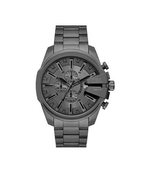 48mm径のケースにクロノグラフムーブメントを搭載したMEGA CHIEF SLIMウォッチ。グレーのサンレイダイヤルに、艶消し仕上げを施したグレーのステンレススチールのブレスレットを組み合わせました。 こちらの商品はブランド専用の箱付きです。