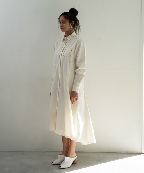 ■コメント■ 長くご愛用いただきたく、企画しているハイライン。超長綿という高級な糸を使用した日本生地を採用。タイプライタークロスという高密度に織った生地を特殊加工し柔らかさとハリ感が特徴になってます。上質な生地感、たっぷりのシルエットで1着でスタイリングが完成する着映えアイテムです。シンプルなルックスですがはしごレースのディティールで抜け感とラグジュアリー感を楽しめます。 ■スタイリング■ 肌寒い時期には、薄めのニットをレイヤードさせてもOK!フロントをすべてあけて羽織りとしてもご着用いただけます。ヒールやサンダルを合わせれば食事シーンなどのキレイ目なスタイリングに。普段使いにはブーツやスニーカーでカジュアルMIXコーデもおすすめです。 ■骨格タイプコメント■ ・レースが非常に似合うウェーブタイプの方におすすめのワンピースです。更にベルトでウエストマークをすることで、腰位置の低さをカバーし、スタイルアップ効果満点です! ・胸元の厚みが気になるストレートタイプさんは、首元のボタンを1〜2個外すことで首回りをすっきりと見せ、垢ぬけた印象になります!さらに、前を全部開けて羽織としてご着用いただくことで、Iラインシルエットがスタイルアップ効果に! ・ナチュラルタイプの方は一枚でゆるっとしたシルエットでオシャレに着こなしていただけます!また、パンツとレイヤードしたスタイリングもとてもお似合いになります。 【原産国】中国 【Product Number】CA2S-O308 【Color】Ivory,Black 【Size】M,L 【Size Chart】 M 着丈:125cm 肩幅:43cm バスト:103cm 袖丈:62cm L 着丈:128cm 肩幅:44.5cm バスト:107cm 袖丈:63.5cm 【Material】 コットン100% ※商品画像はサンプルのため、色味やサイズ、素材の混率等の仕様に変更がある場合がございますので、予めご了承ください。